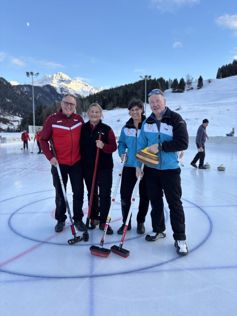 60 Jahre später war es nicht mehr so kalt in Savognin und man spielt inzwischen auf der offenen Eisbahn in La Nars. Ein Team des CC Uznach und Team Flims (Markus Margreth) mit 3 Uzner hatten sich rechtzeitig in die Startliste für das Jubiläumsturnier 60 Jahre CC Savognin eintragen lassen.